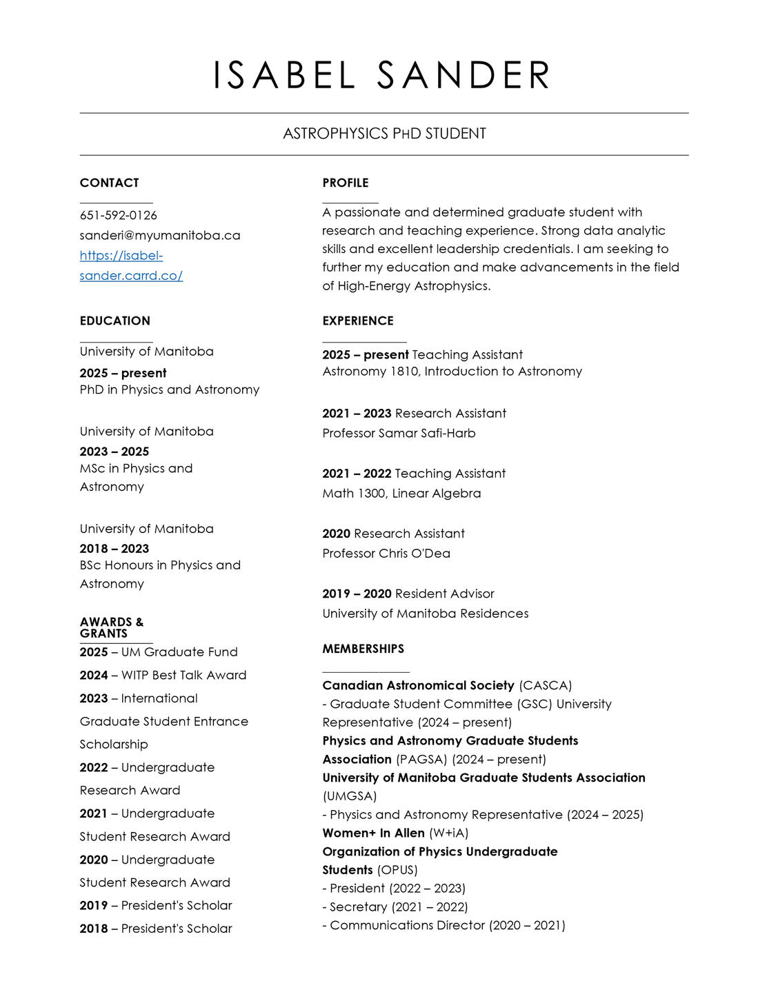 Full CV available upon request.Refer to the section below for an overview of education, awards, and positions.